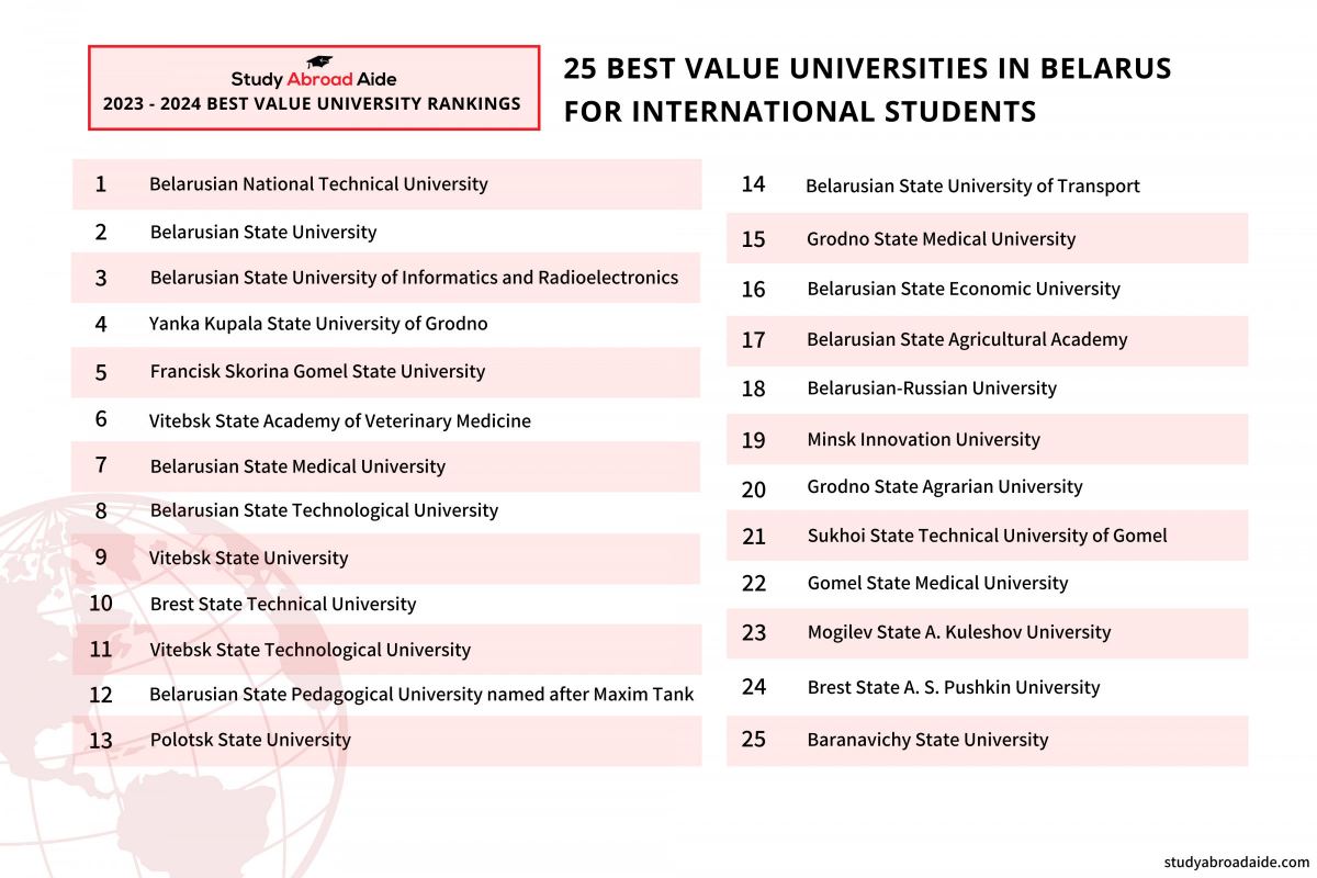 • занял первое место среди белорусских вузов с наилучшей стоимостью обучения для иностранных студентов;