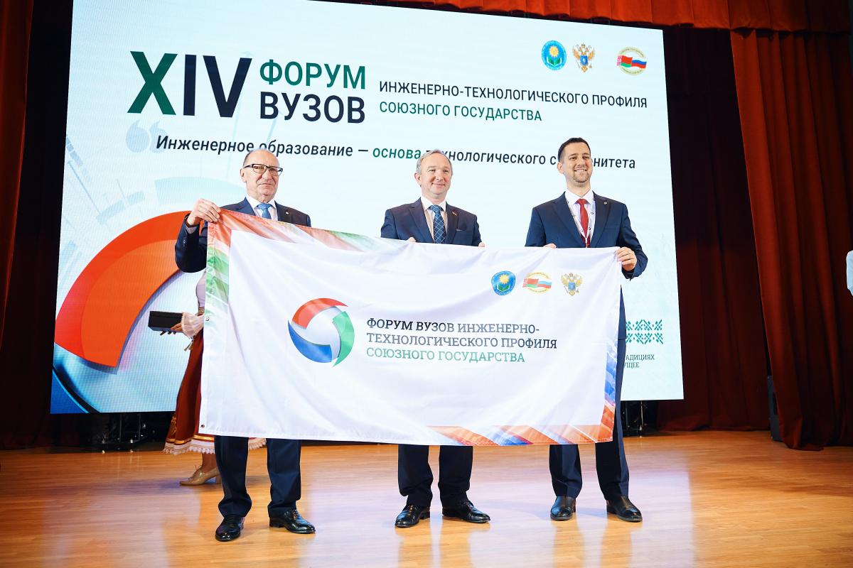 Финалом форума стала передача знамени Казанскому федеральному университету – XV Форум вузов инженерно-технологического профиля Союзного государства в 2026 году пройдет именно там.