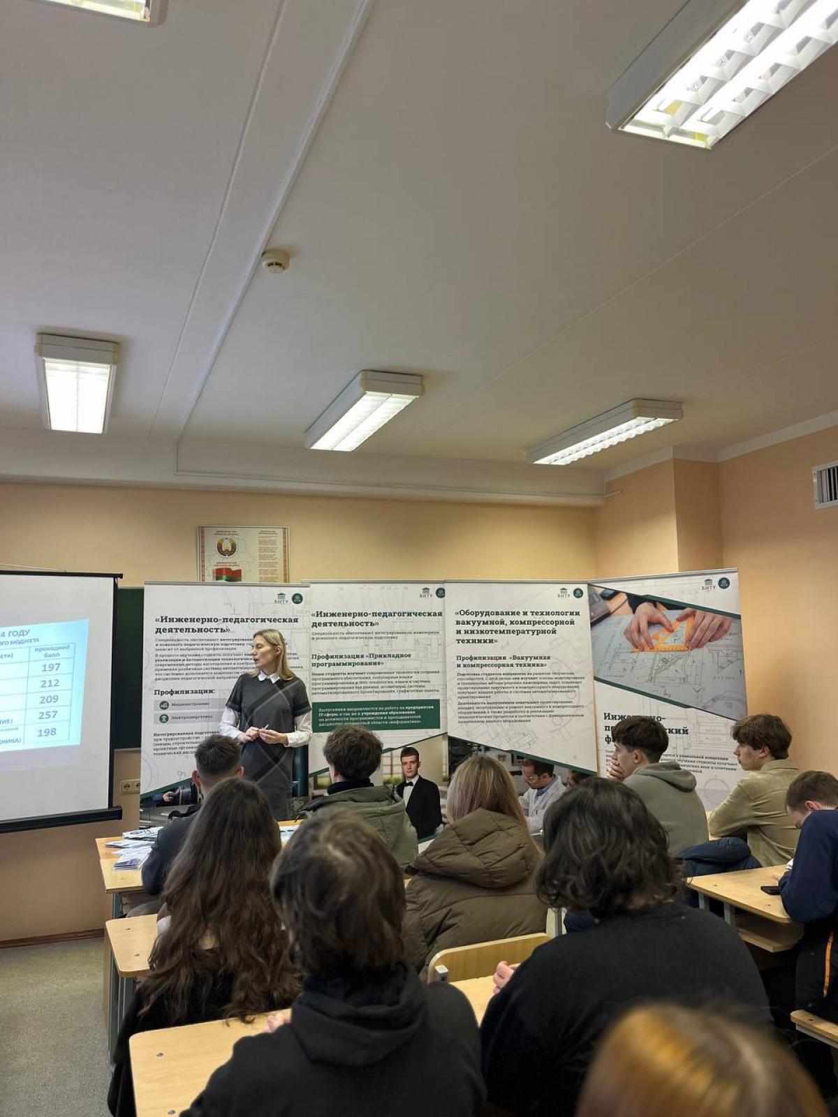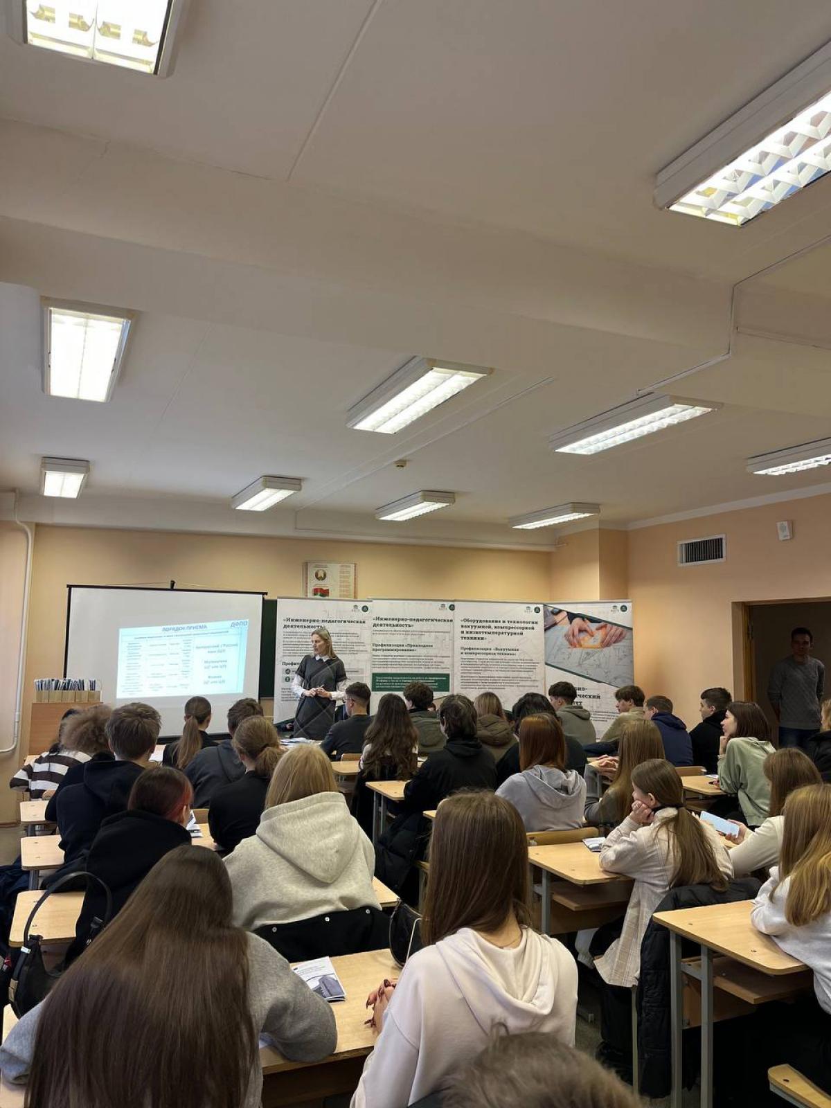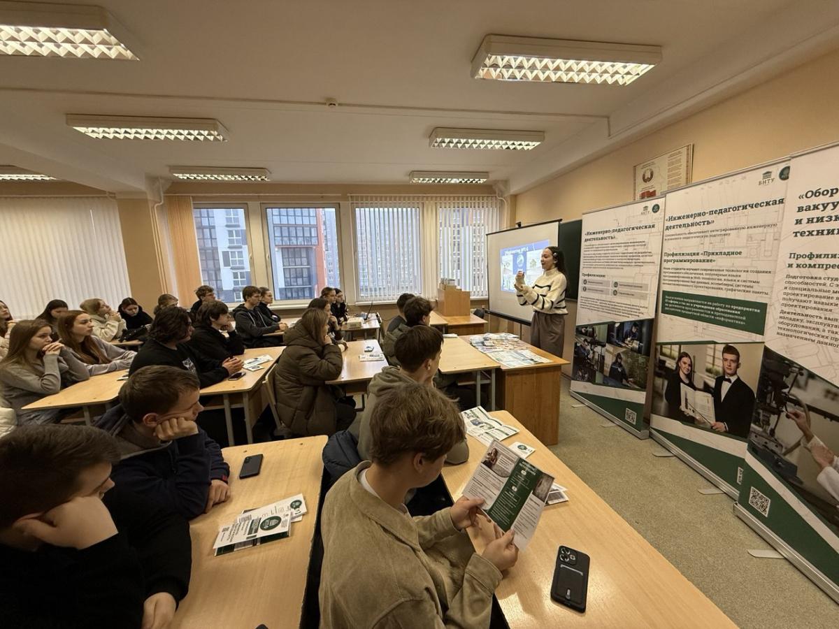 В рамках дня открытых дверей факультета, посвященного 105-летию Белорусского национального технического университета, инженерно-педагогический факультет провел встречу с профильными инженерными и педагогическими классами, направленную на осознанный выбор учащимися будущей профессии. На мероприятии декан Алексей Дробыш рассказал о Белорусском национальном техническом университете, ознакомил учащихся инженерных, педагогических классов с актуальными специальностями и требованиями современного рынка труда.