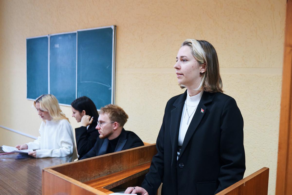 Сегодня, 5 ноября, в Белорусском национальном техническом университете в рамках проекта «Молодежь о главном» прошла диалоговая площадка «Положение молодежи в Республике Беларусь» со студентами спортивно-технического факультета (СТФ). Спикерами выступили председатель студенческого совета СТФ Екатерина Бекар, председатель совета старост СТФ Екатерина Федосенко, представитель молодежного крыла ОО «БСЖ» СТФ Анастасия Игнатчик и заместитель секретаря ПО ОО «БРСМ» СТФ Иван Катаев.